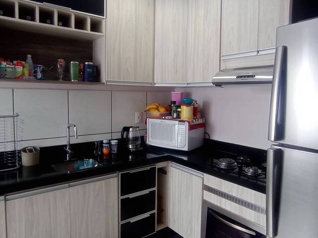 Lindo apartamento à venda no jardim Gisela contendo 2 quartos, sala com painel, cozinha planejada, banheiro com armário e garagem coberta.